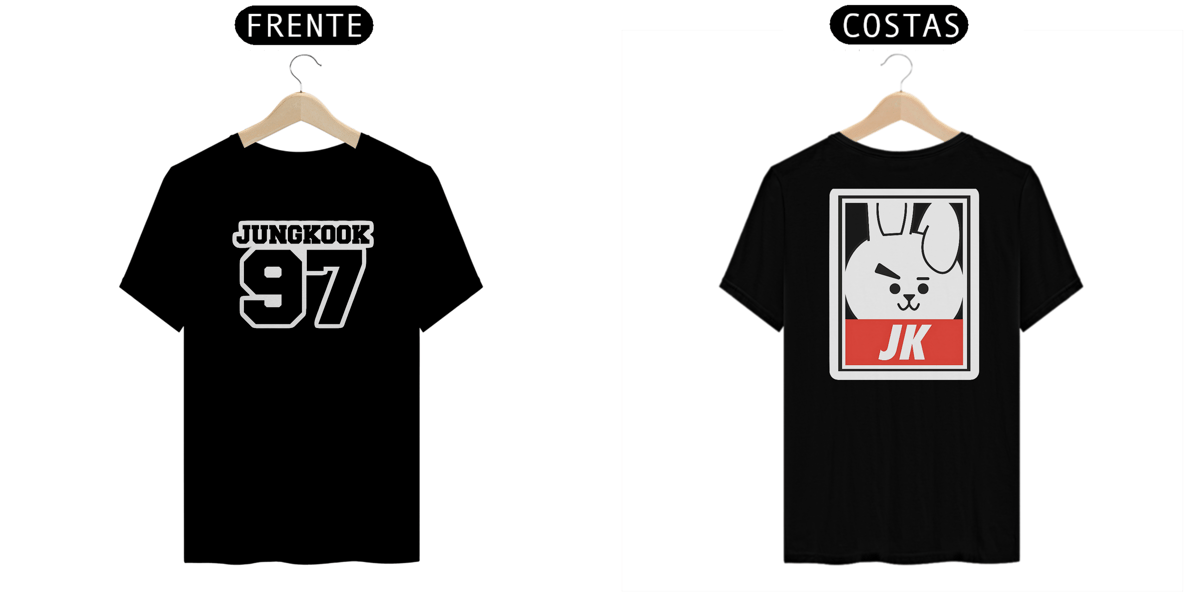 A Camiseta Broba Shirt edição especial Jungkook 97, personalizada para Cliente, traz o melhor do estilo K-pop com um toque único. Em preto clássico, a peça apresenta o número 97 e o nome JUNGKOOK em um design arrojado na frente, refletindo o amor e a energia dos fãs do BTS. Na parte de trás, a estampa do coelho Coney, símbolo de Jungkook, adiciona um charme extra, com a sigla "JK" em destaque, tornando a peça ainda mais especial e exclusiva.