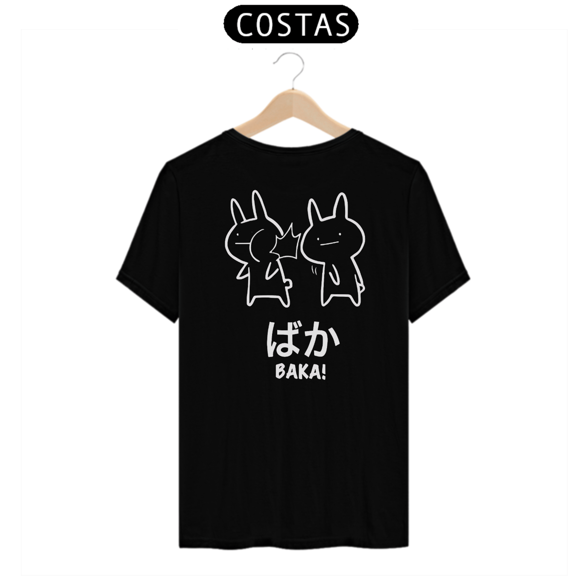 Direto dos animes para sua camiseta! Dois coelhinhos estilo chibi em um momento clássico de comédia japonesa: um tapa e o icônico “ばか (BAKA!)”, que significa “idiota” em japonês. Um design minimalista, divertido e cheio de personalidade para quem ama cultura otaku, memes e expressões marcantes.